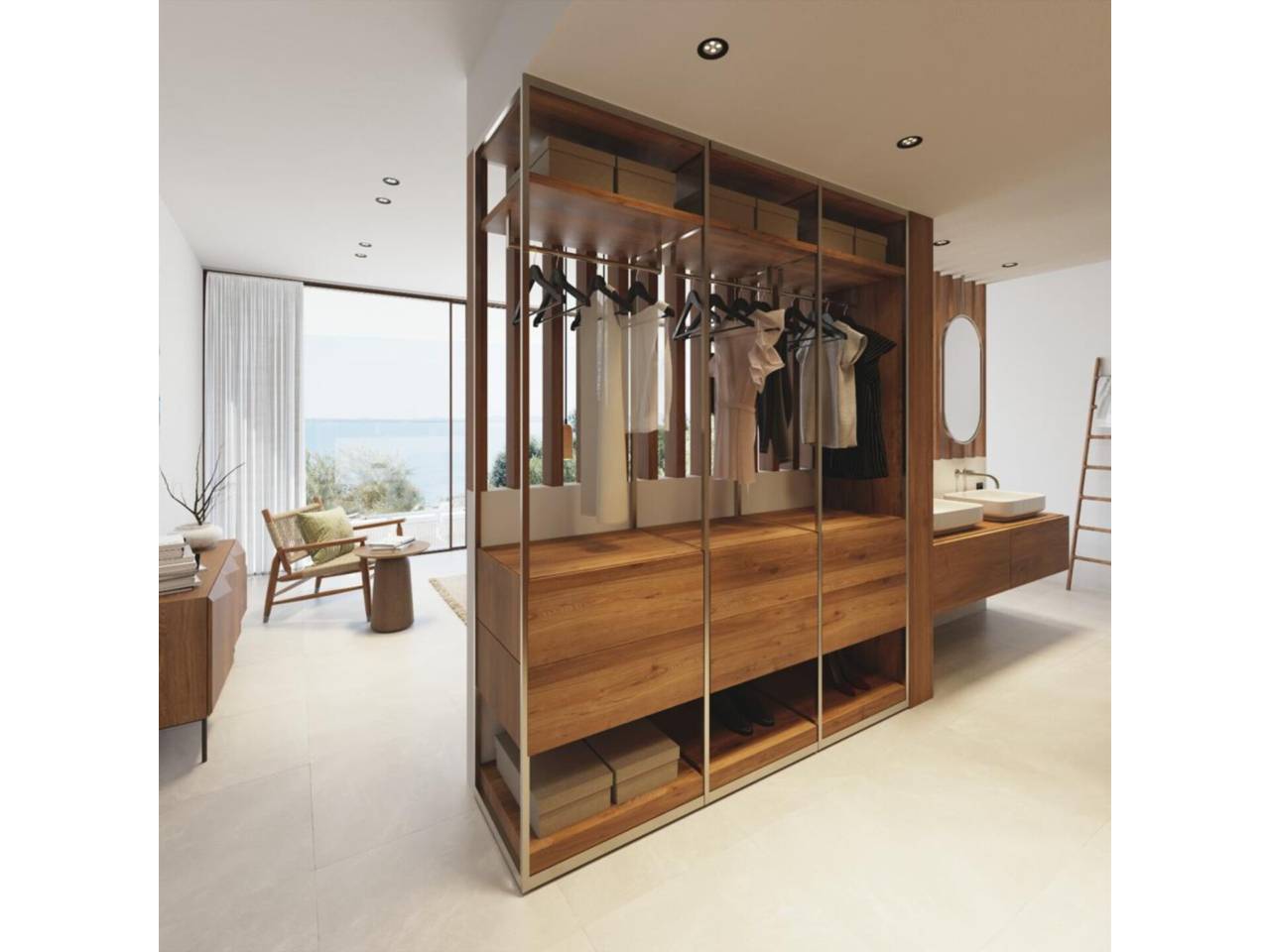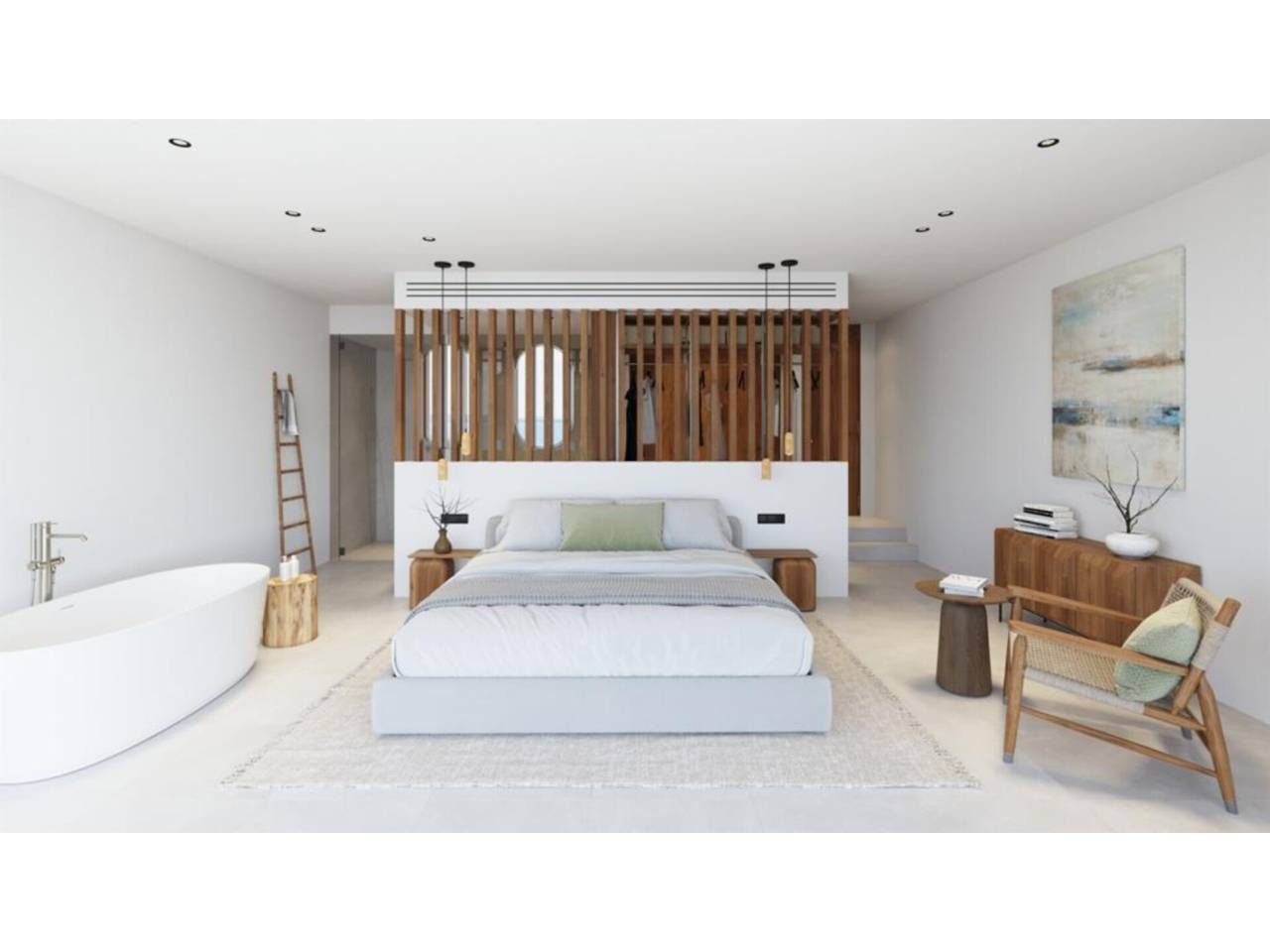 En la planta inferior se sitúa un lujoso dormitorio principal con un amplio baño en suite y acceso directo a la terraza cubierta y a la piscina. También hay un tercer dormitorio en este nivel, que cuenta con su propio baño en suite. En el exterior, la propiedad dispone de un jardín bien cuidado, terrazas tanto cubiertas como soleadas, y una piscina infinita con área para tomar el sol.
